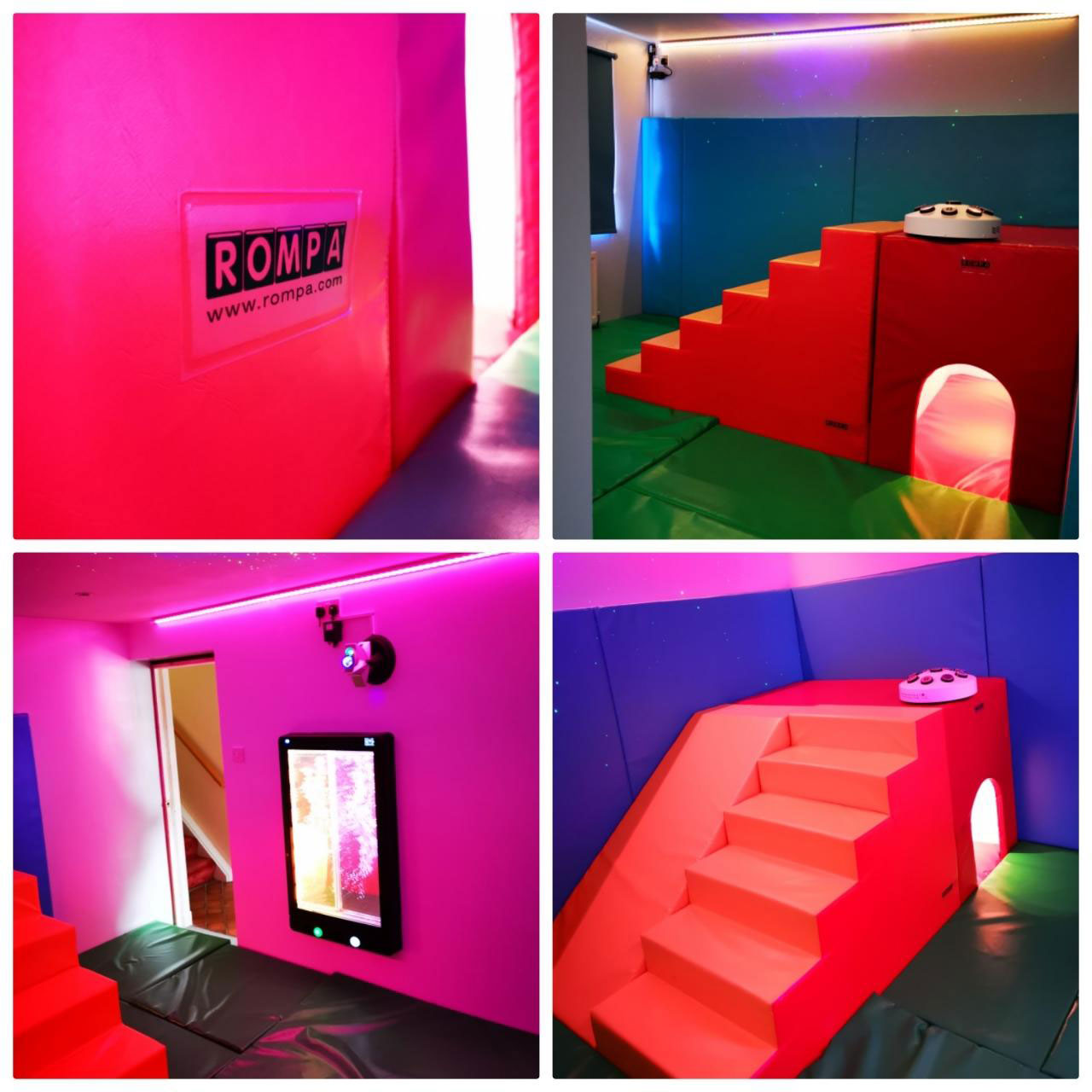 The coloured, padded floors and walls combined with the steps and lit hiding hole are a joy for Danny.